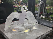 Очень сложная и интересная работа по созданию уникального мемориального комплекса. Он на столько уникальный и запоминающийся, что если на Троекуровском кладбище (богемное кладбище Москвы), где установлен этот комплекс, вы спросите у любого служащего где находится могила с лебедем, вам легко покажут дорогу.